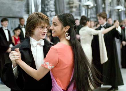 Harry e seu par no baile, a jovem Padma Patil (Afshan Azad)